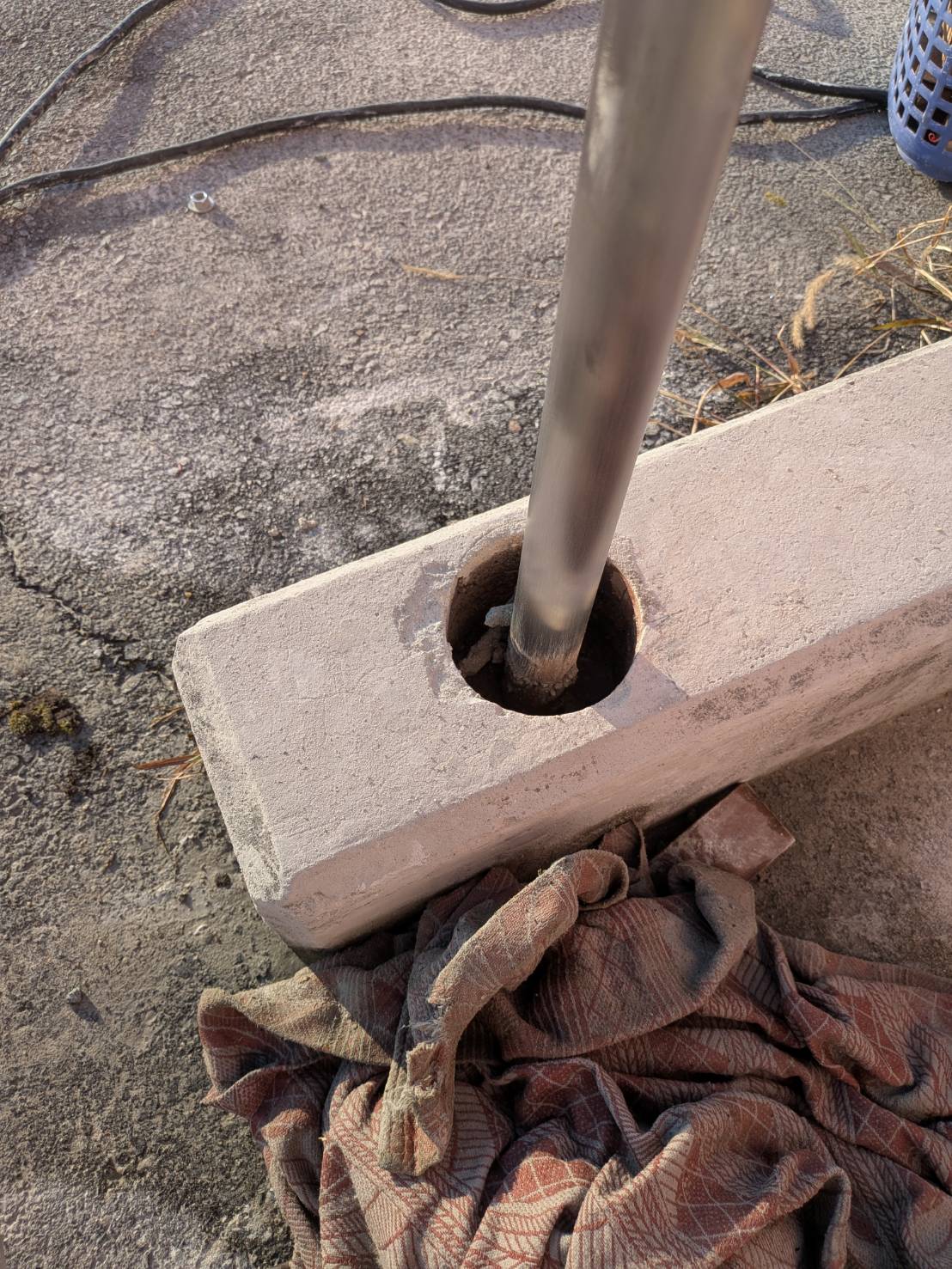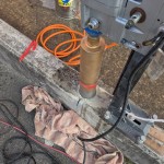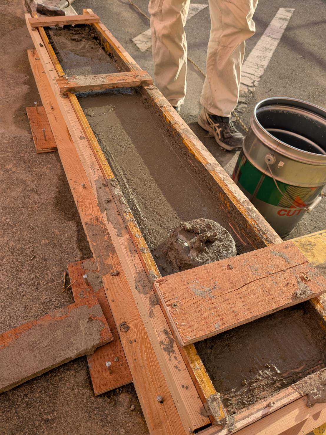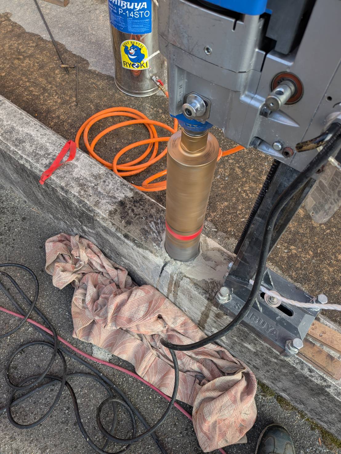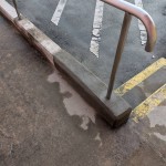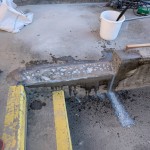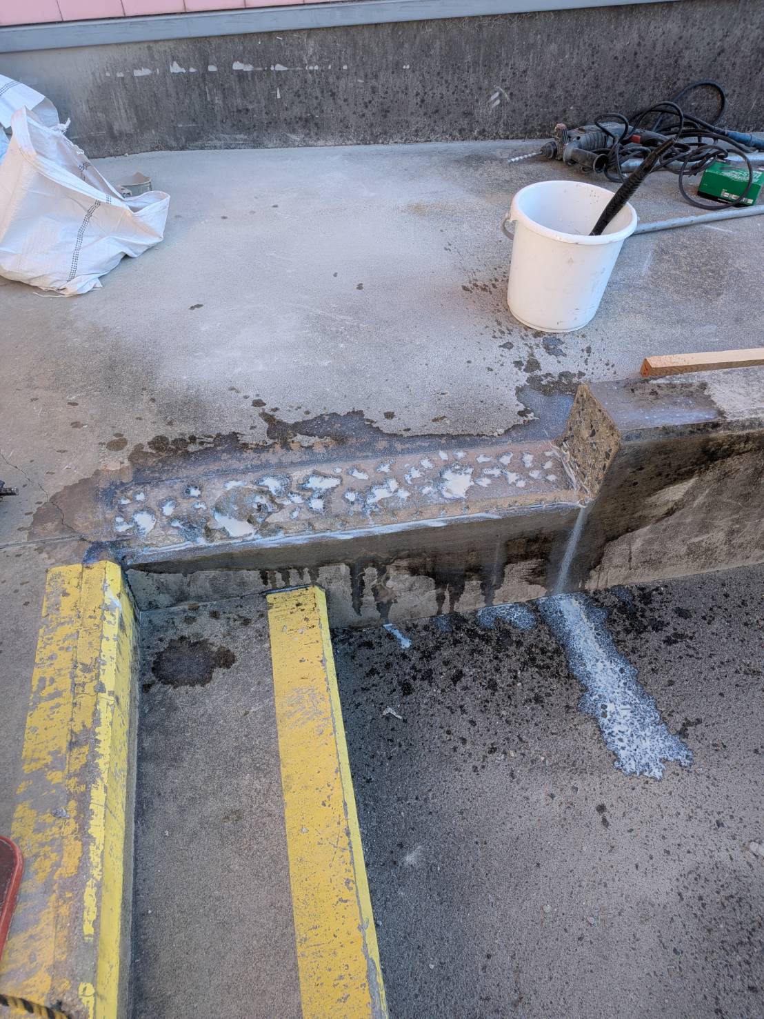 ⑤型枠施工及び既設手摺撤去⑥コンクリート打ち込み及び各部コア抜き⑦後日手摺取り付け及びシゴキ